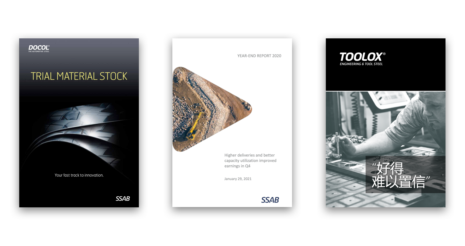 The SSAB site sets up a Download Center with full material manuals and annual reports available for direct downloads.
