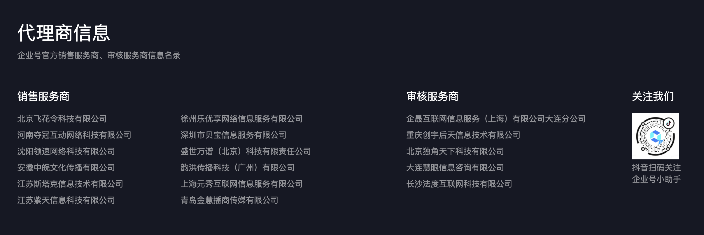 Douyin also endorses a list of local agencies that helps companies set up business accounts on the platform.