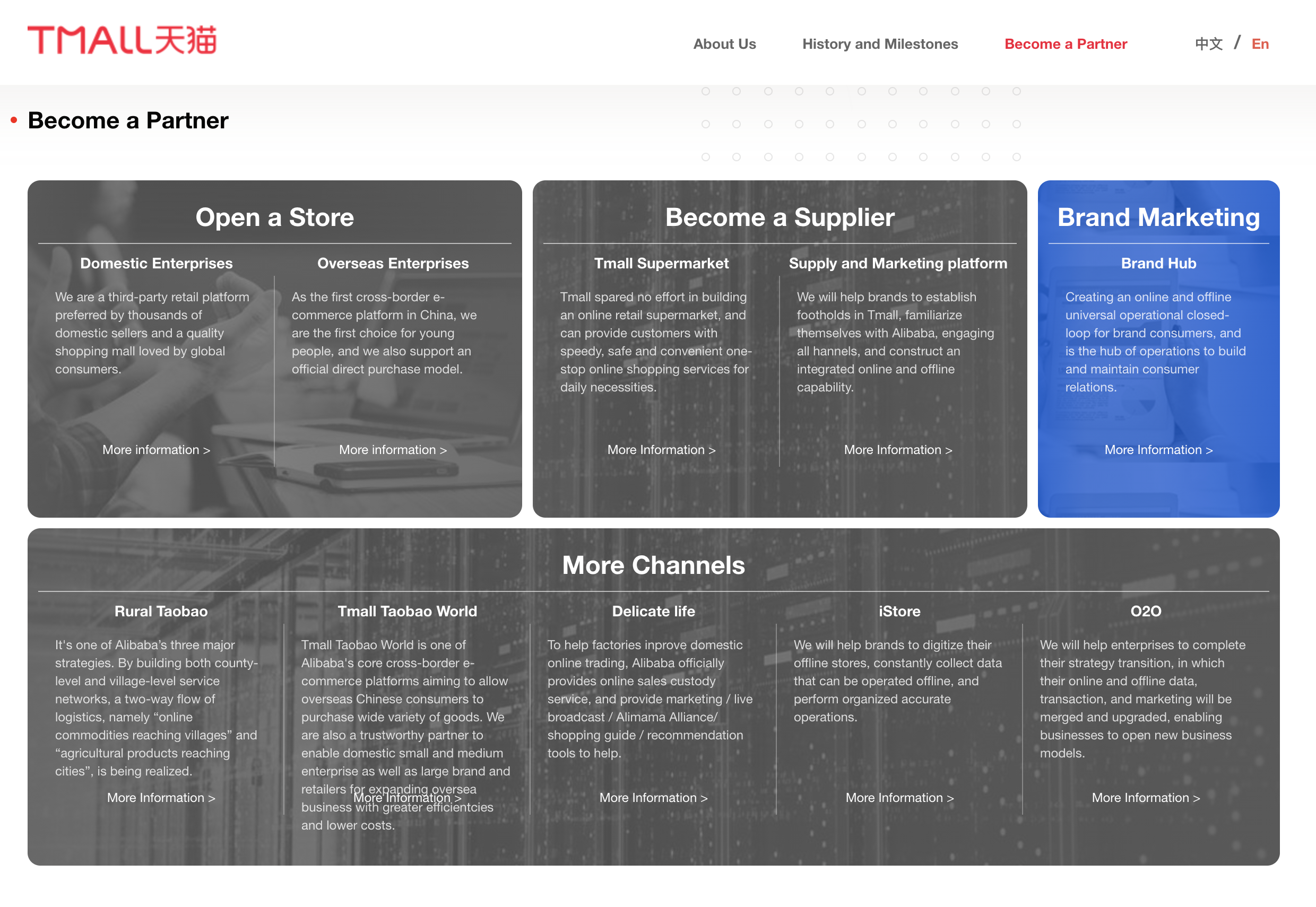 Owned by Alibaba Group, Tmall differentiates itself from the rest of the e-commerce family with its upscale appeal and quality-first brand value.
