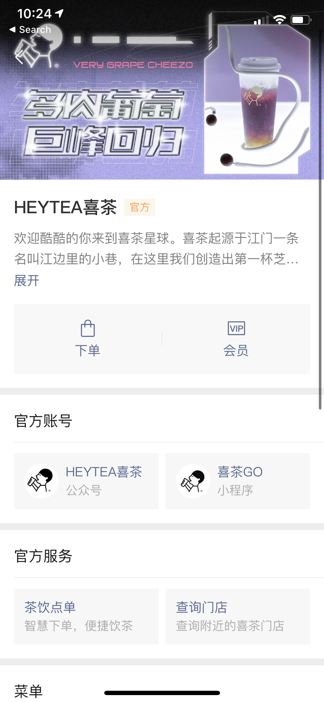 Picture: HEYTEA's WeChat Mini Program