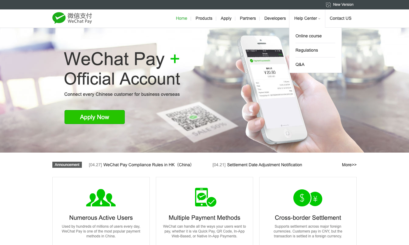 Service providers interested to help merchants to integrate and maintain the WeChat pay cross-border payment service system.