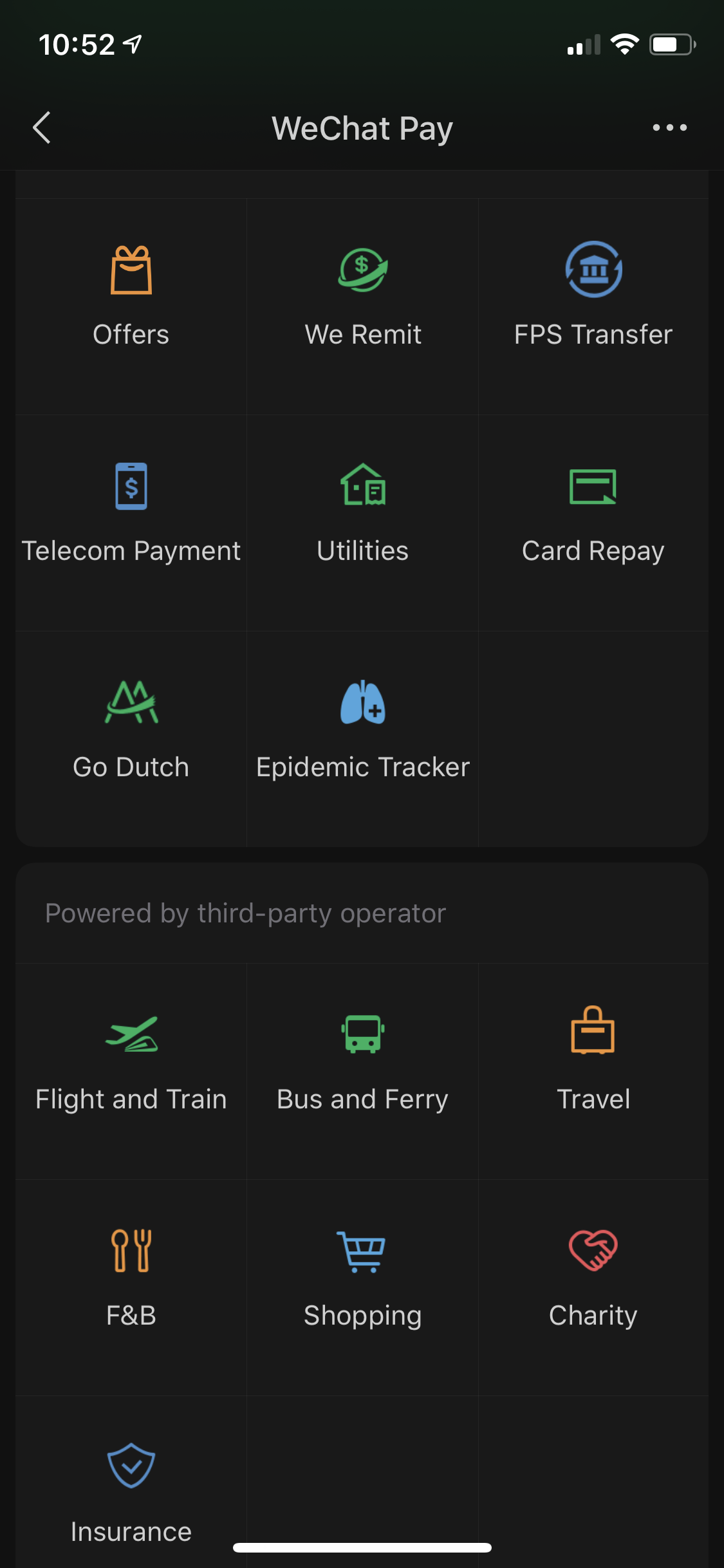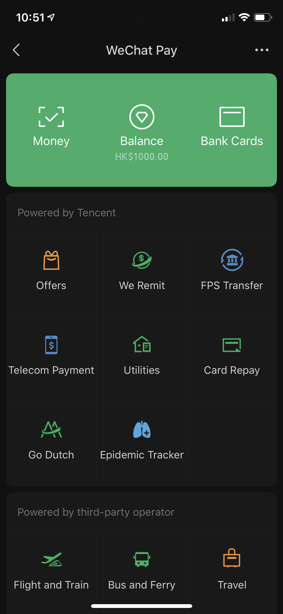 WeChat Pay can be used to fulfill payment from utilities to personal transactions. It also supports both HK$ and RMB¥.